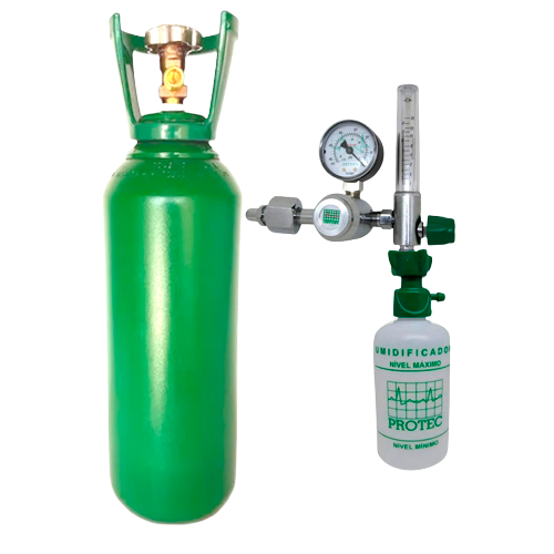 Kit para uso de Oxigênio Medicinal – Cilindro de 7l AÇO (Sem Carga) +Vávula com Fluxômetro+ Frasco Umidificador 250ml + Cateter nasal tipo óculos ou Máscara com extensão 1.5m